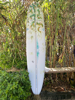 These paintings are in a recent custom board and freehand painting for Michael. He is evolving into a unique surfer with his own style. Also an excellent leather worker with custom art, and engravings.